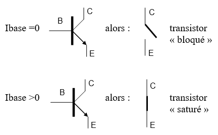 Si l'intensité de l'ordre de commande (IBASE)est suffisamment importante, le transistor va faire circuler le courant du collecteur vers l'émetteur