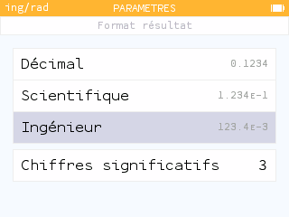 Le résultat sera affiché sous le forme de puissances de 10 par multiple de 3