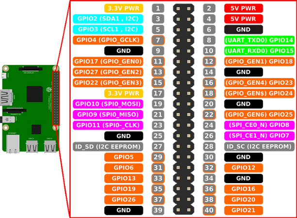 Connectez hors tension les périphériques du Rasberry pi :