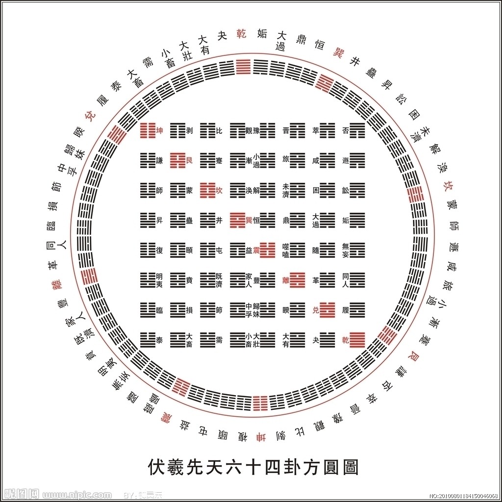 | Les 64 hexagrammes de Fuxi | Les huit trigrammes |