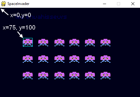 Il s'agit de placer une image avec la méthode blit en utilisant les coordonnées rectangulaires des aliens.
