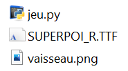 Enregistrer le fichier au format png portant le nom vaisseau.png dans un dossier de vos documents où se trouveront tous les fichiers nécessaires au lancement du programme.