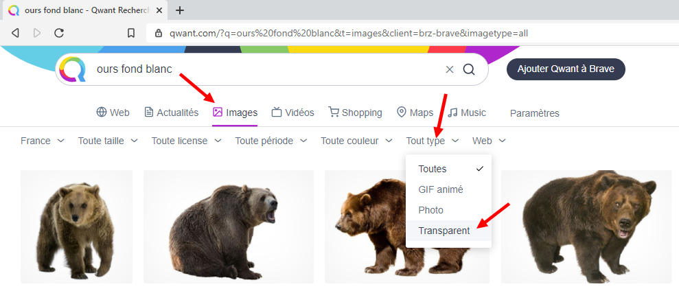 Recherche d'une image avec un fond transparent dans les moteurs de recherche