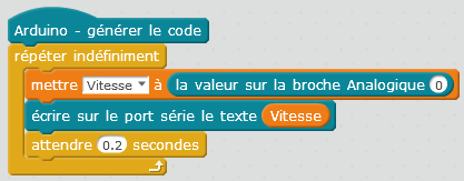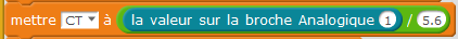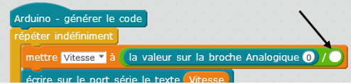 Ajouter un opérateur division et une valeur entière permettant d’obtenir une vitesse maximale de 200 km/h pour la valeur 1000 délivrée par le capteur.