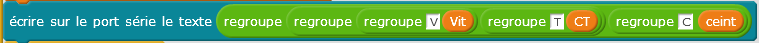 Les données envoyées par l’Arduino à l’ordinateur par le câble USB doivent apparaître. Le bloc qui communique avec l'ordinateur est le suivant :