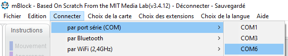Dans Mblock, connectez le port et vérifier le format de la chaine transmise en mode texte. Faites varier les capteurs afin de vérifier l'évolution de leurs états.
