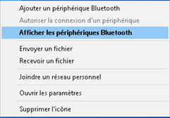 Cliquez sur l’icône Bluetooth dans la zone de notification puis afficher les périphériques Bluetooth