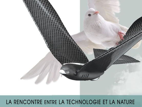 Le Bionic Bird n’est pas un drone comme les autres, ne cherchez pas les hélices, il n’en a simplement pas. En effet, cet appareil s’inspire du battement des ailes des oiseaux pour s’envoler. Cette science s’appelle le biomimétisme, elle consiste, pour faire simple, à observer les phénomènes mécaniques et biologiques de la nature pour trouver des solutions techniques, applicables à des objets de construction humaine. Cette technologie appliquée à un drone permet d’obtenir un engin volant insolite et totalement silencieux. Le drone se pilote à l’aide d’un smartphone et une application dédiée compatible Android et iOS.