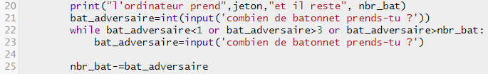Remplacer la partie du code où on demandait à l'utilisateur de choisir le nombre de bâtonnets :