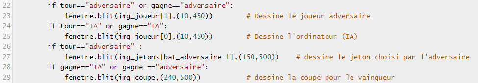 Expliquez les lignes 21 à 23 et indiquez comment l'adversaire arrive à gagner au début des parties