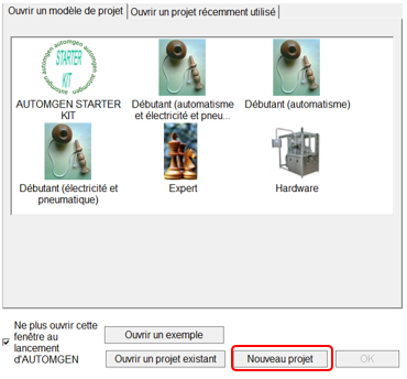 Cliquer sur Nouveau projet