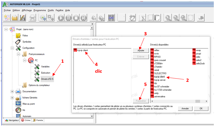 Faire un double clic sur Drivers d’E/S (1) puis suivre les étapes 2 à 5