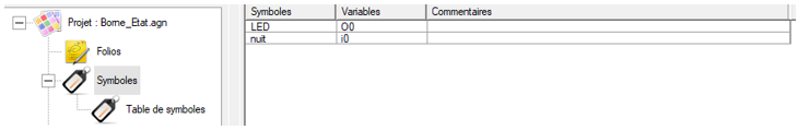 Créer une table de symboles avec un clic droit et complétez-la comme suit :