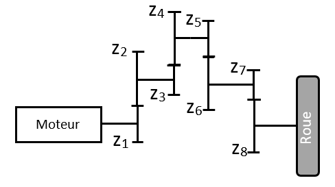 Le moteur est accouplé à un réducteur dont le schéma est représenté ci-dessous.
