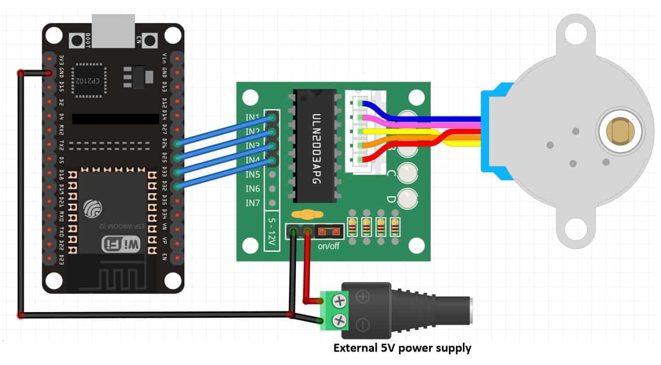 Les moteurs pas à pas s’appellent « Steppers » en anglais. Leur pilotage se fait par des transistors intégrés dans une puce : UNL2003A