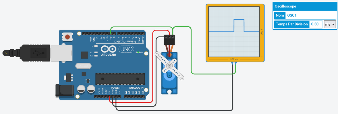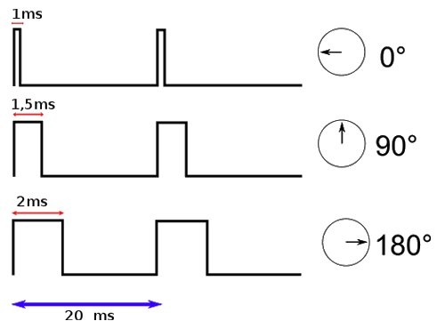 La durée du temps haut va faire varier l'angle de consigne du moteur. Exemple :